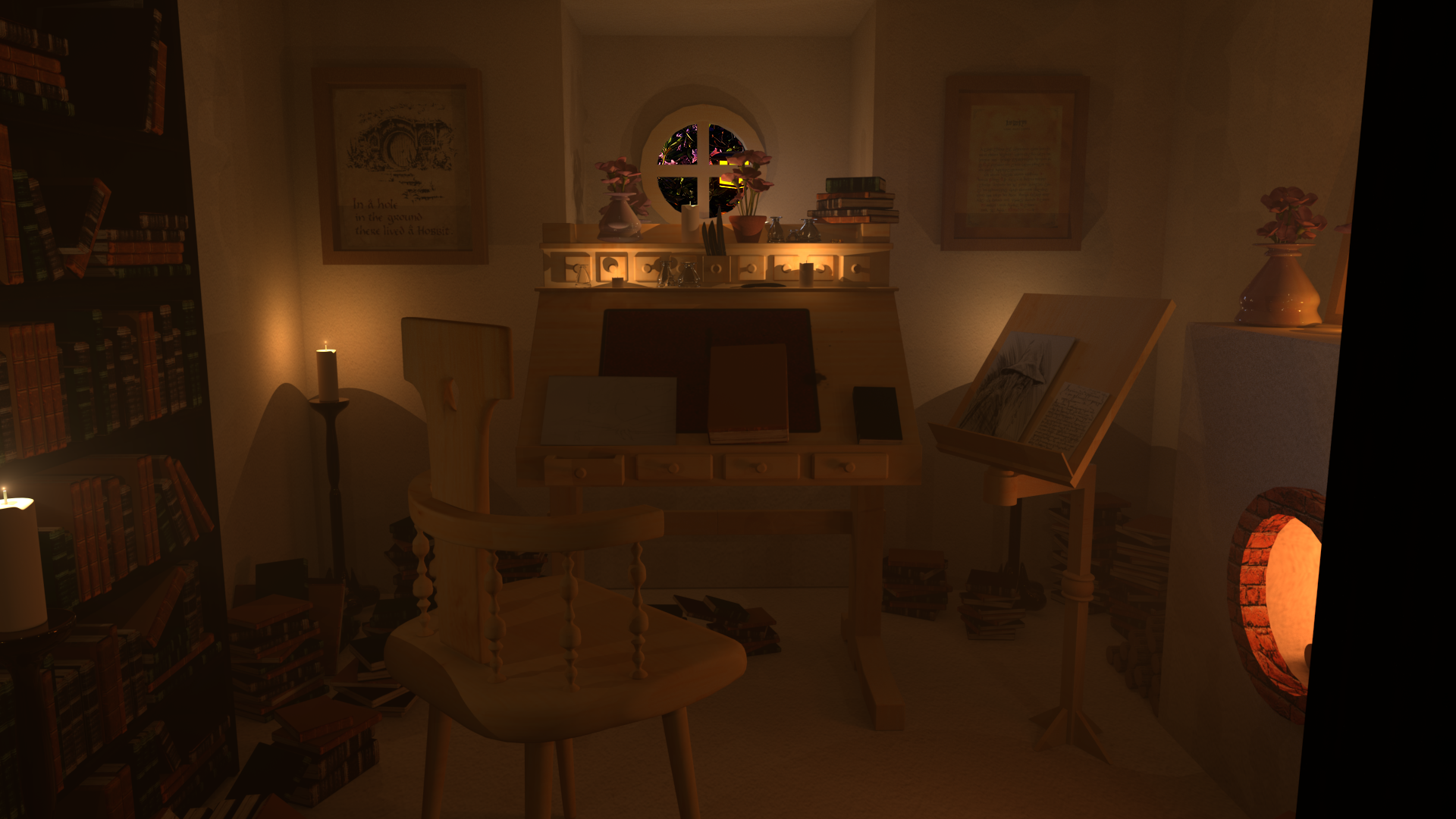 For my first time 3D modelling, I chose to do a case study for Bilbo Baggins’ Study from The Lord of the Rings. Learning Maya was a rollercoaster of a ride, but I ultimately fell in love with hard surface modelling.