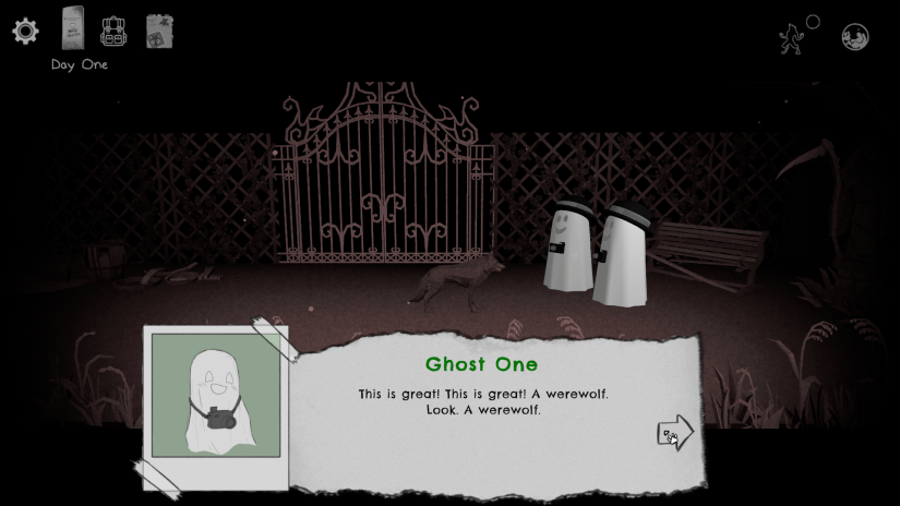 In Wolf of Evergreen, the player is Frankie a vlogger who investigates several werewolf sightings in the small town of Evergreen. They will interview several people before ultimately finding out whether the sightings are a hoax, mass hysteria, or truthful.