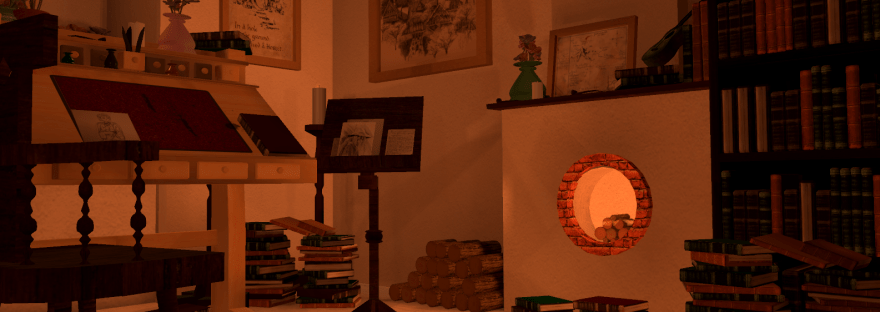 With inspiration taken from Bilbo Baggins’ study, featured in ‘The Lord of the Rings’ and ‘The Hobbit,’ this Hobbit Room was built within Maya. All objects within the room where created by myself, with some images sourced from online and materials manipulated through Photoshop. For an extracurricular activity, I then took this room and turned in into a VR experience using Unity, allowing people to see the room as if they are actually there.
